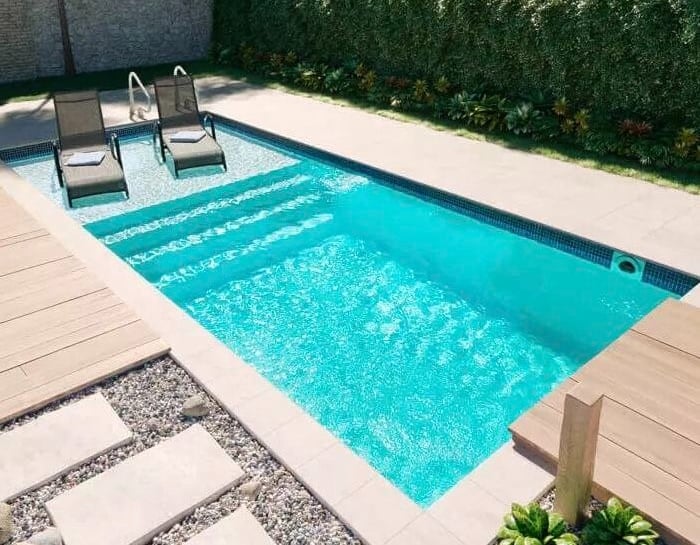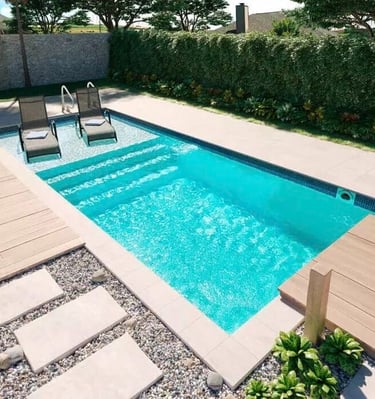 Ofrecemos instalaciones de piscinas de fibra de vidrio.